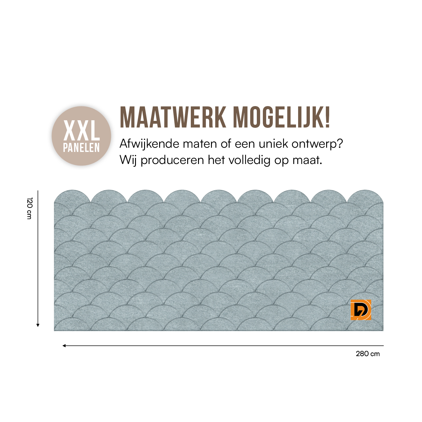 Viltpaneel D252 is een paneel van 280 x 120 cm voorzien van een stijlvol patroon. Vilt lambrisering in andere afmetingen? Wij produceren viltpanelen in alle gewenste afmetingen, binnen de plaatafmetingen van 282 x 122cm.