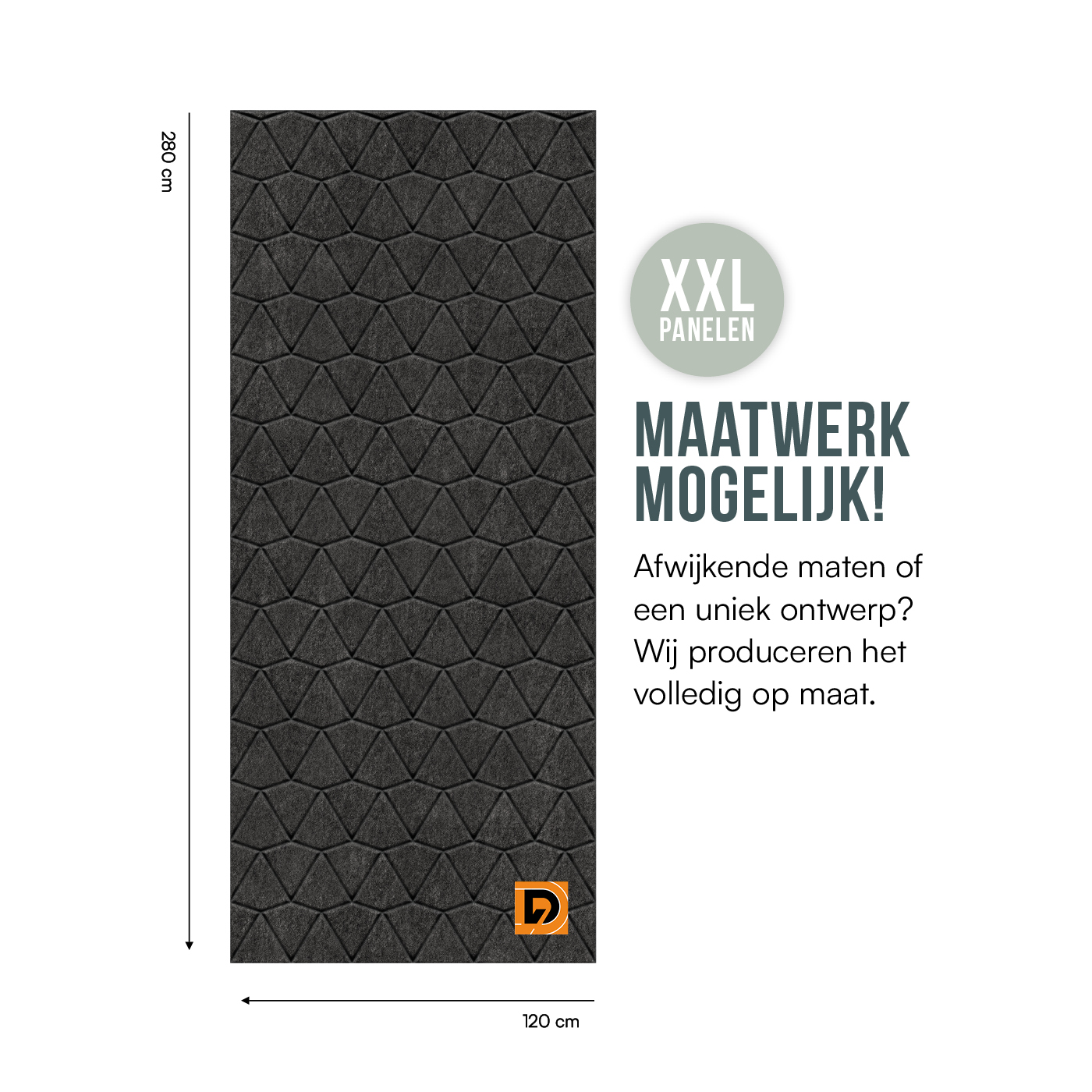 Viltpaneel D230 is een paneel van 280 x120 cm voorzien van een strak doorlopend patroon. Viltpaneel in een andere afmeting? Wij produceren viltpanelen in alle gewenste afmetingen, binnen de plaatafmetingen van 282 x 122cm.