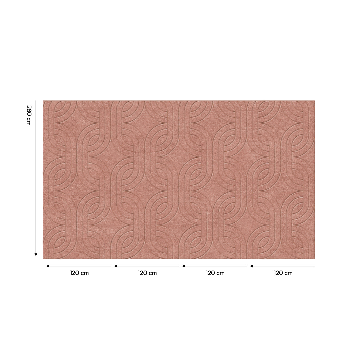 Viltpaneel D239 is een paneel van 280 x120 cm voorzien van een vloeiend doorlopend patroon. Viltpaneel in een andere afmeting? Wij produceren viltpanelen in alle gewenste afmetingen, binnen de plaatafmetingen van 282 x 122cm.
